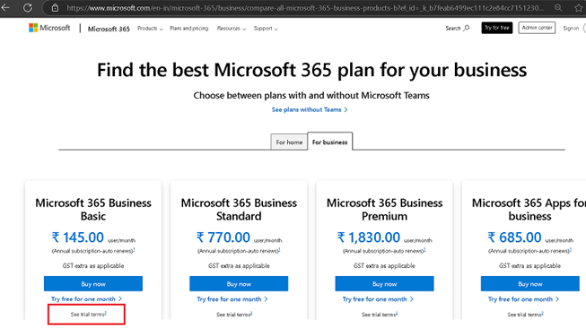 Step1-To get 0365, login to https://www.microsoft.com/en-in/microsoft-365/buy/compare-all-microsoft-365-products